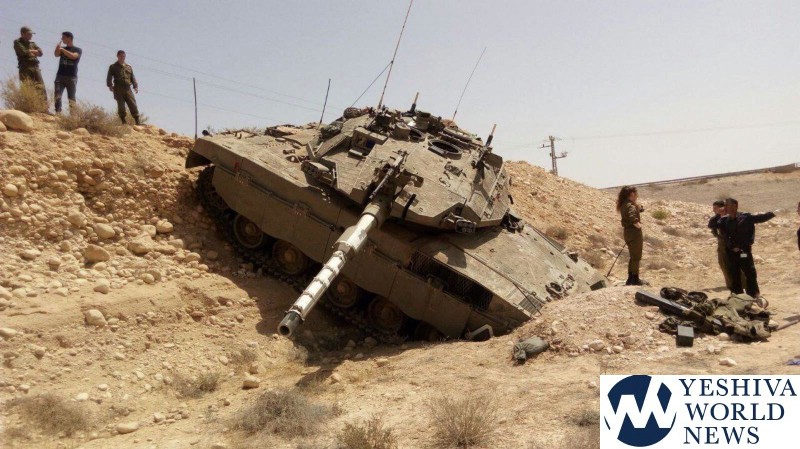 The Merkava III tank was moving down an incline when it slipped and flipped over, leading to the outbreak of a fire inside the tank as a shell ignited for reasons that are yet unknown. The tank’s internal fire extinguishing system put out the blaze and save the lives of the other crew members.