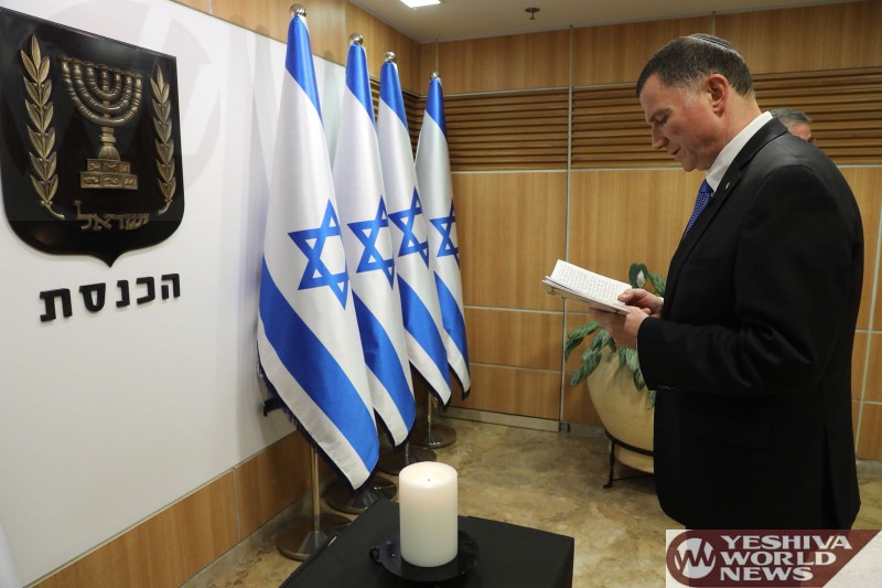 Launching the official events in Knesset was Knesset Speaker Yuli Edelstein, who lit a candle and recited Tehillim for the fallen, 23,646 in number.