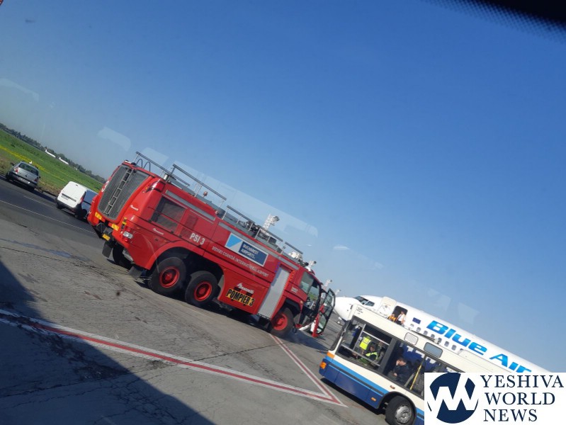 A Blue Air flight traveling from Bucharest to Tel Aviv on Sunday morning, 7 Iyar, made and emergency landing in Ben-Gurion International Airport, landing at 7:45AM. According to the pilots, after about an hour in the air, a fire was discovered in the plane’s engine.