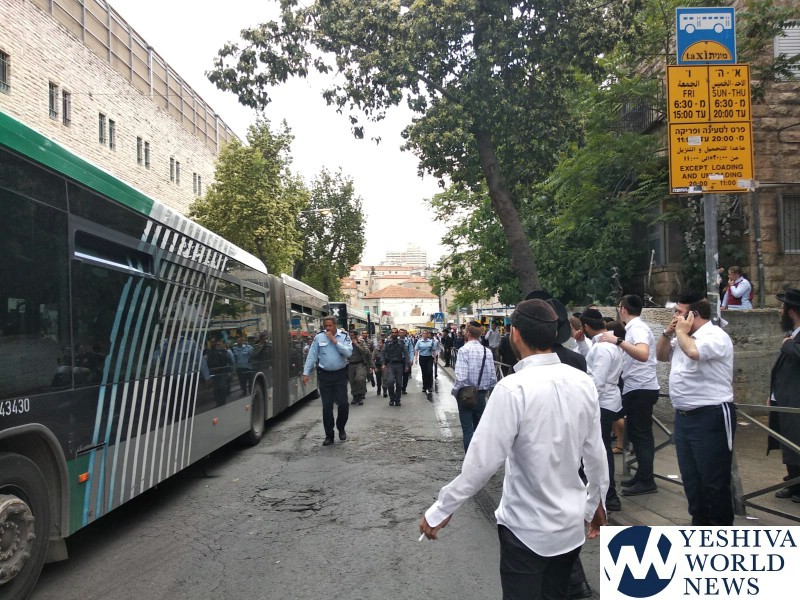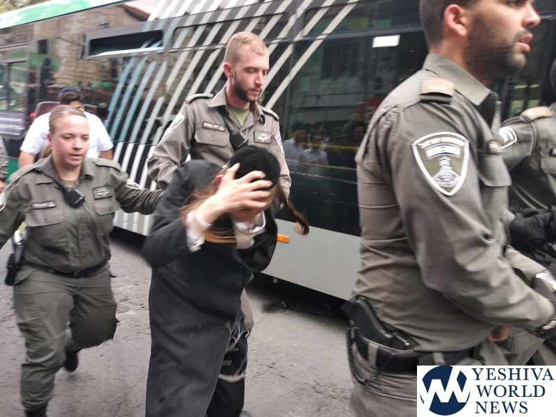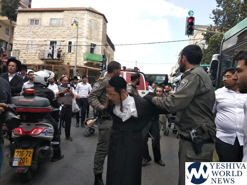 Following the early-morning Police raid in Meah Shearim which resulted in the arrest of 4 people including one 14-year-old, local residents staged protests at the intersection of Tzefania and Yechezkel Streets on Monday afternoon. Protests were also held at Kikar Shabbos.