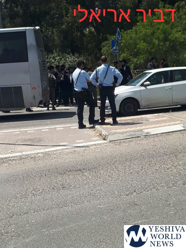 In Yerushalayim, protesters tried to shut down Bar Ilan Junction at Shmuel HaNavi. A large police presence is seen to maintain the flow of traffic on a busy weekday in the capital.