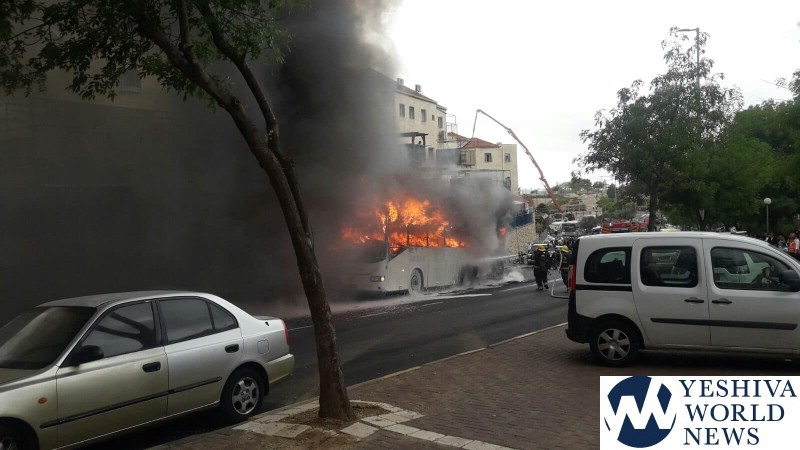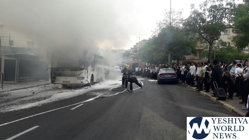 A bus was on fire in Betar Illit on Thursday afternoon, 11 Iyar. B’chasdei Hashem, there was no one on the vehicle and the blaze was extinguished before the fire could spread.