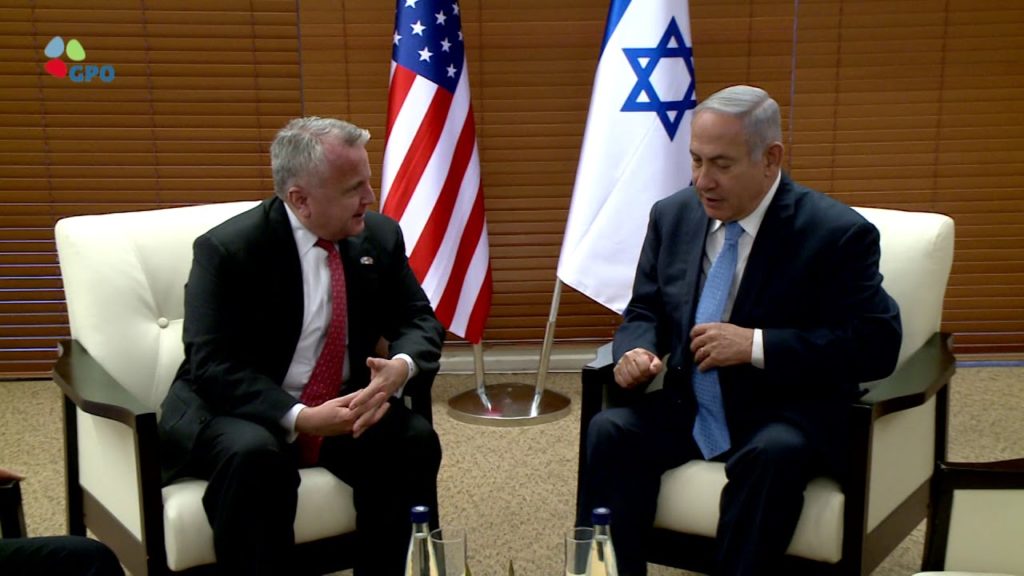 Prime Minister Binyamin Netanyahu, on Sunday evening 28 Iyar, at the Foreign Ministry in Jerusalem, before the welcoming ceremony, met with US Deputy Secretary of State John J. Sullivan.