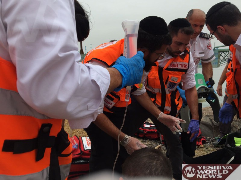 United Hatzalah EMT-3 Kobi Sror explained, “When we arrived we were told by persons in the areas that the teen jumped into the water and then they lost contact with him and summoned emergency services. They pulled him from the water and moved to the rocks nearby.”