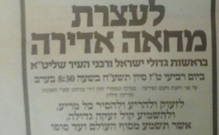 The notice for the protest was advertised in the daily HaPeles, the Peleg-affiliated newspaper.