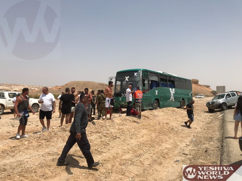 The call came in at 11:18AM for a vehicular accident in the Negev between a bus and a truck on Route 90, on the Aravah Road near Tzukim.