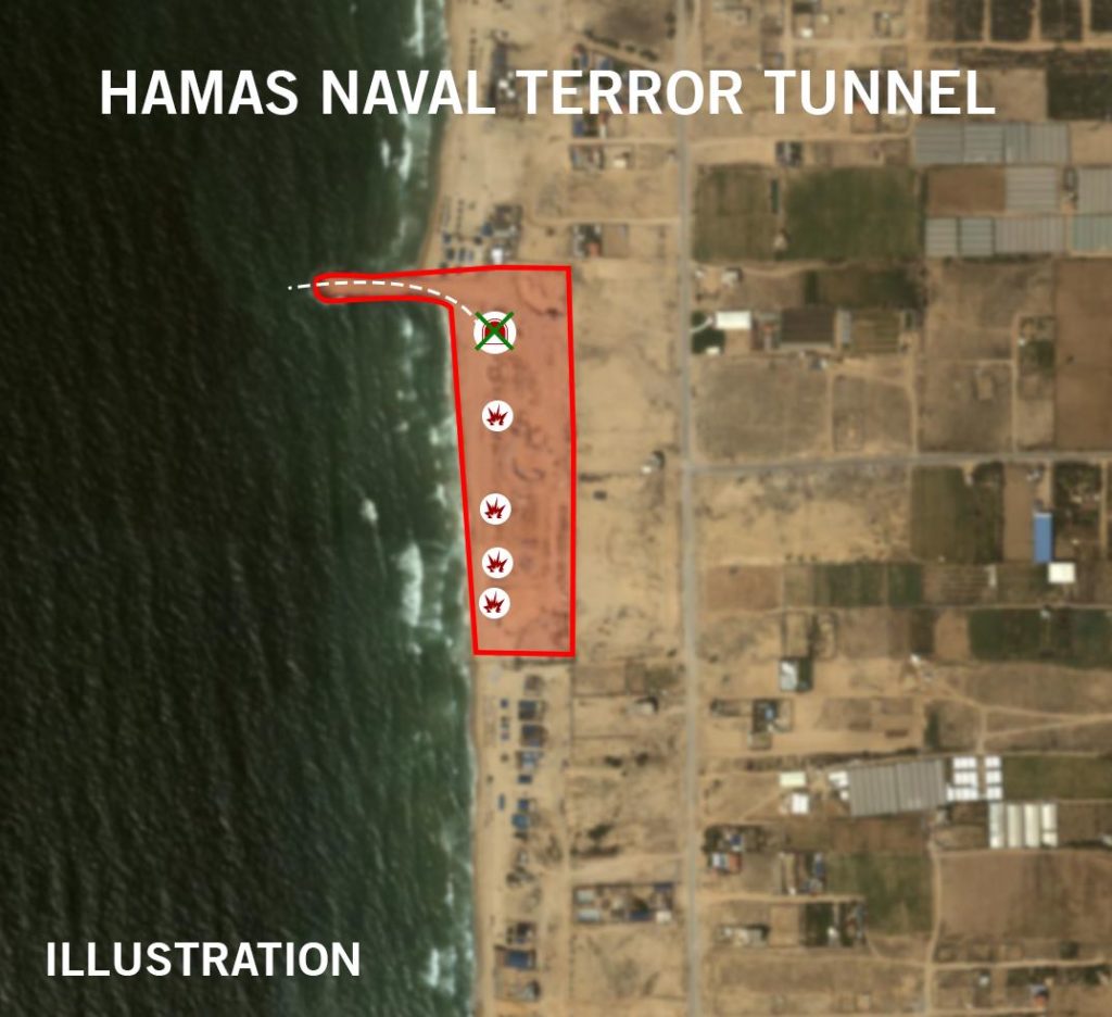 The route of this tunnel was identified as part of the ongoing campaign against the Hamas naval forces, which the IDF has conducted over the past year pic.twitter.com/1TlvqgbM2T
