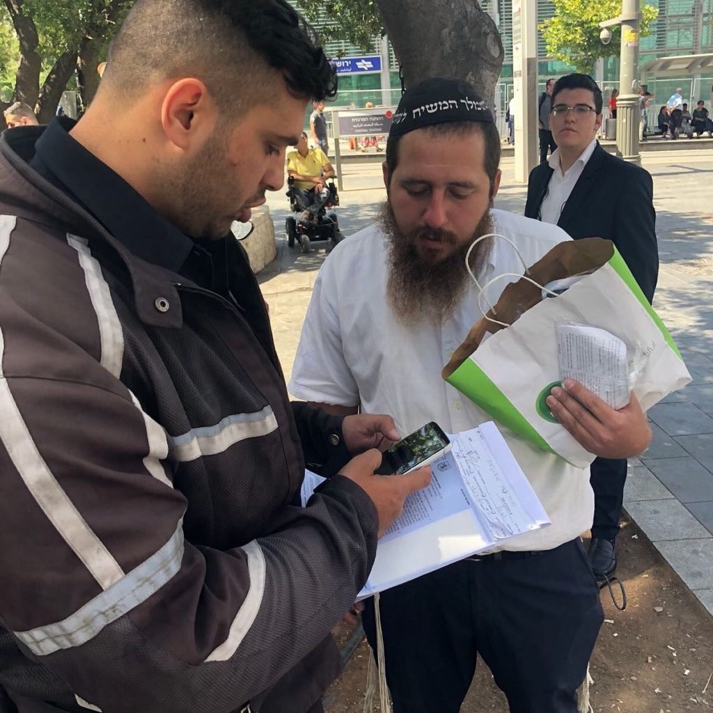 In this case, a shaliach who mans a booth outside the Jerusalem Central Bus Station, all day, was targeted with a fine of NIS 475, and instructed to ‘shut it down’.