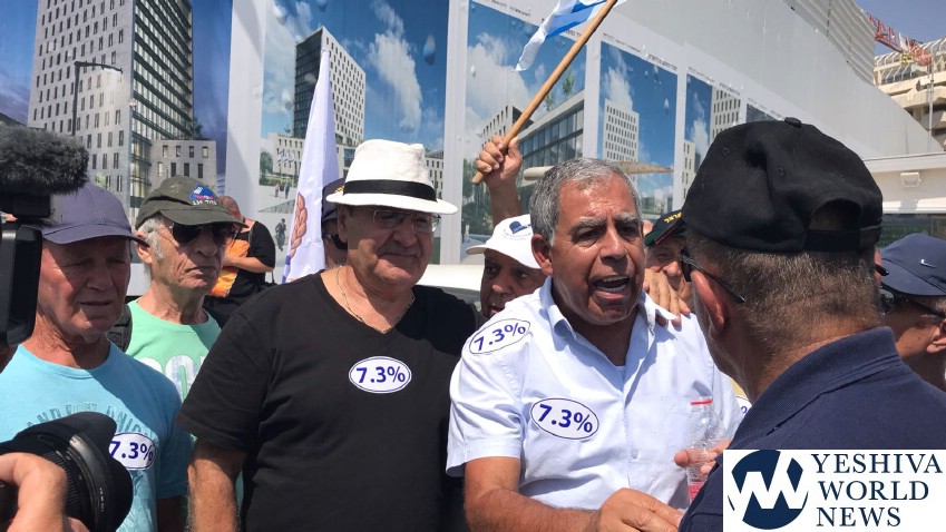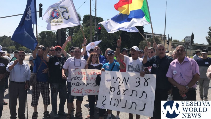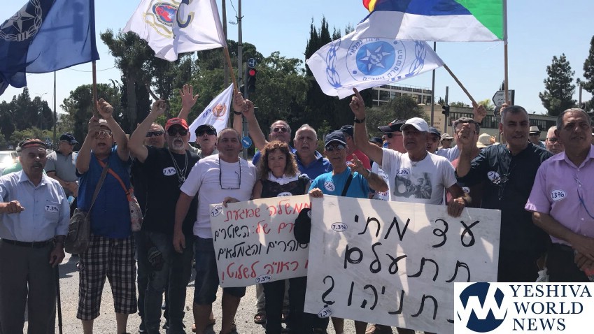 Dozens of police and Israel Prison Service retirees, along with members of their families, protested in the capital on Wednesday, 25 Elul in a protest against the government’s failure to match their wages and pensions to career military personnel.