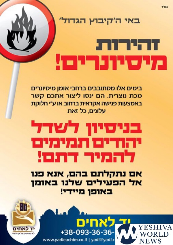 Yad L’Achim warns that Christian missionaries are working the streets of Ukraine, handing out literature and speaking with people in order to persuade Jews to leave their religion. Some of the flyers being distributed by missionaries are printed in Yiddish.