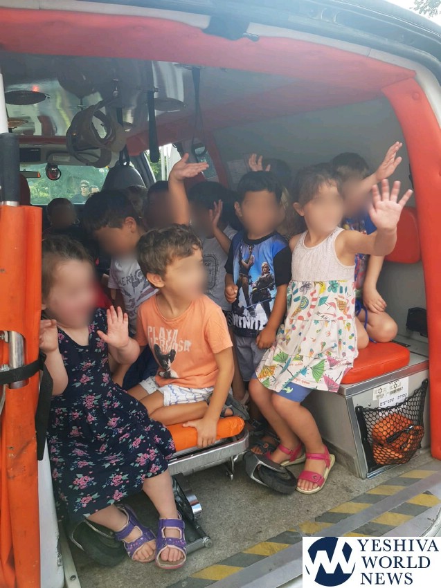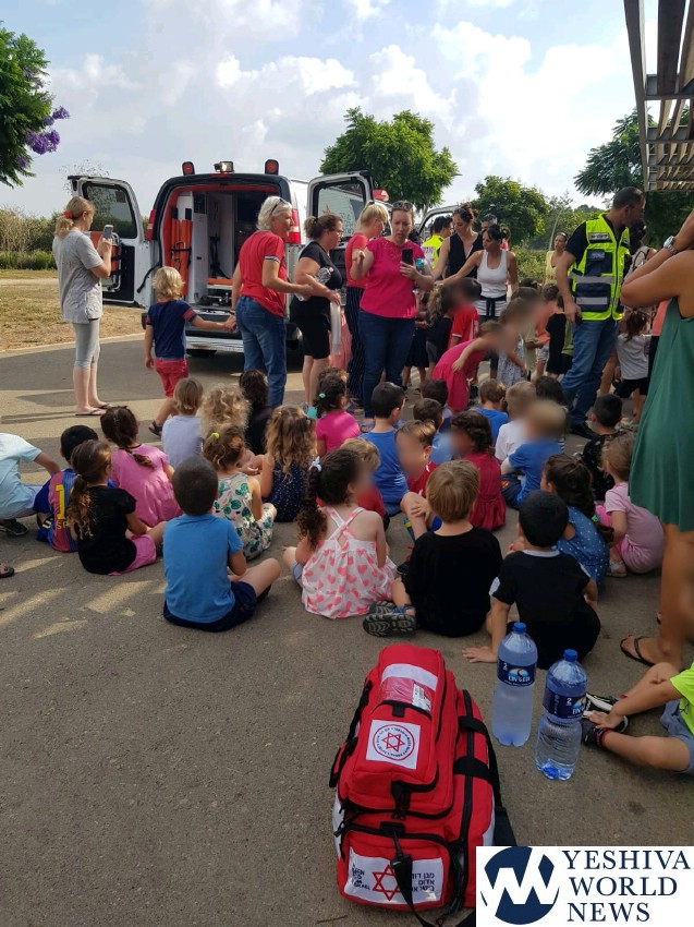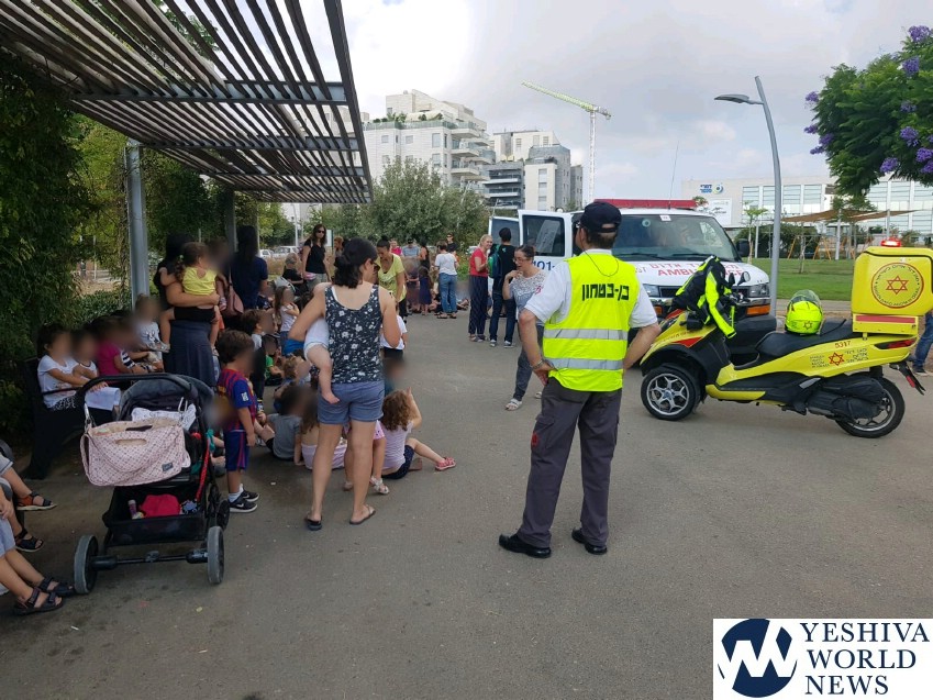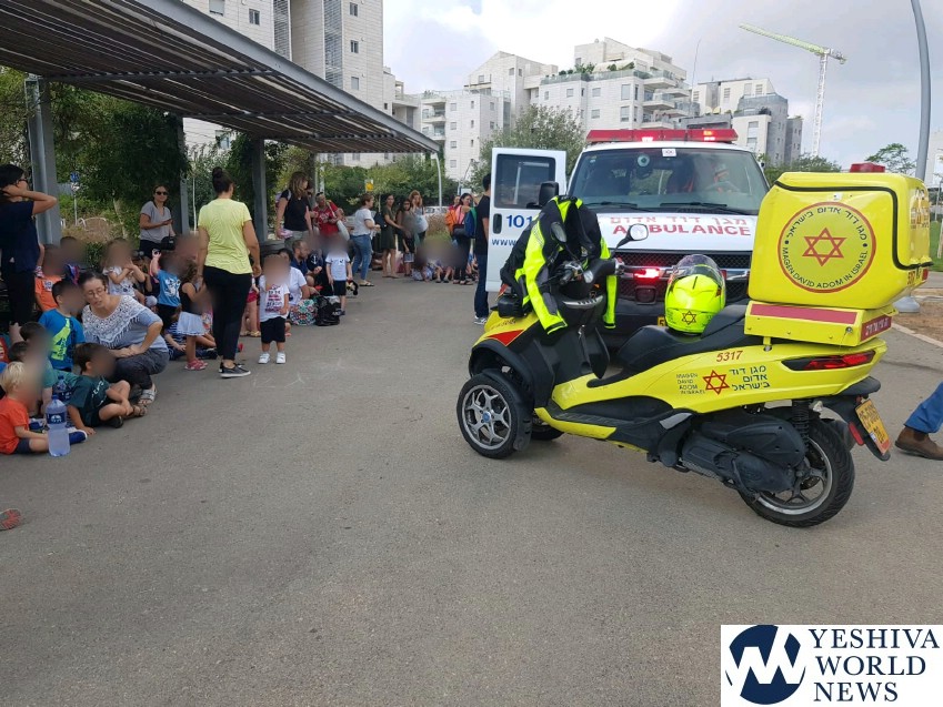 On Sunday morning, at 8:31AM, MDA’s 101 call center in the Yarkon area received a call for a gas leak near the kindergartens on Shlomo and Chaya Engel Street in Kfar Sava. Police, fire and EMS responded to the scene and the first order of business, was to distance the 120 children, ranging in age from 2-7, from the danger zone.