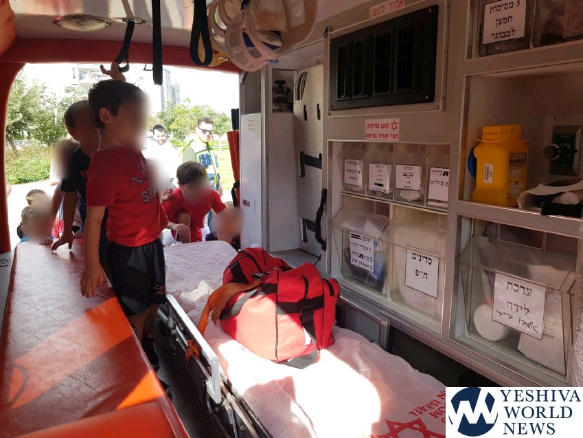 While the firefighters were handling a gas leak near kindergartens in Kfar Sava, MDA teams addressed the 120 children whom were evacuated from the kindergartens due to the gas leak. Being that they were not in need of medical care, the MDA teams brought the little ones to a safe area and then began showing them the ambulances and the equipment.