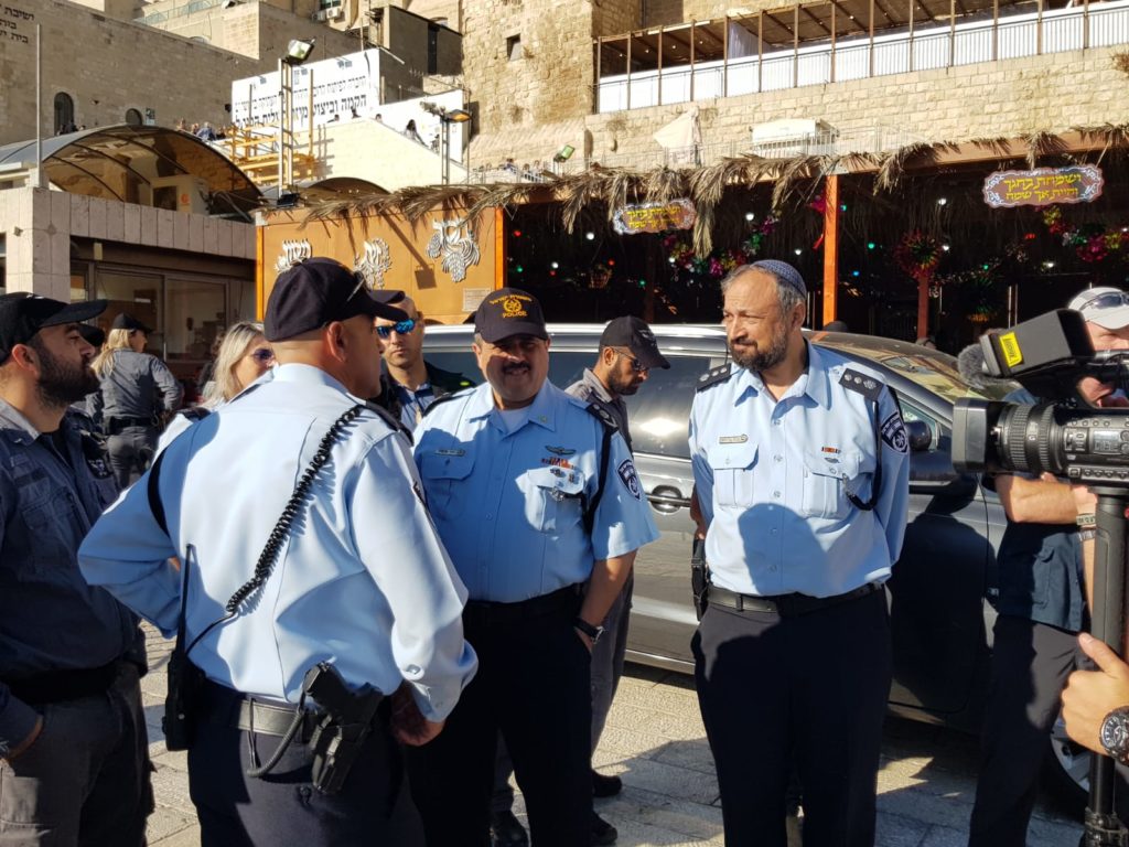 High-ranking Israel Police officials were out early, inspecting the Kosel and Har Habayis areas ahead of the arrival of tens of thousands of mispallalim and visitors. Special precautions are in place to ensure the security of all the visitors as well as to accommodate the large number of people coming to the Old City during Sukkos. This includes the closure of the Old City to all non-resident and emergency vehicles.