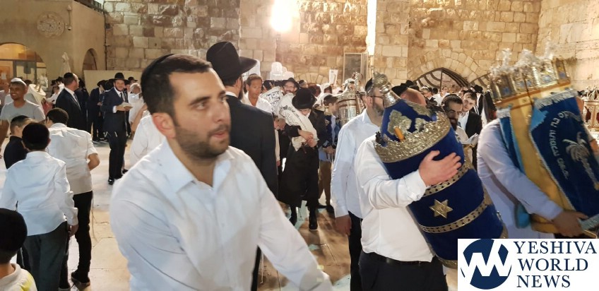 In the following photos, we get a glimpse at the second hakofos that were held on Monday night, motzei Simchas Torah in Eretz Yisrael, taking place at the Kosel.