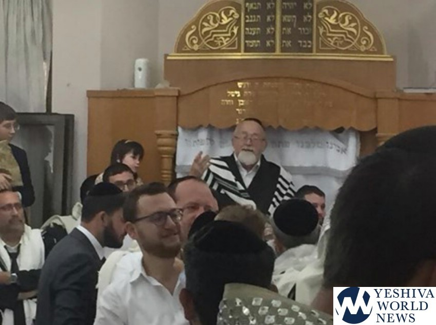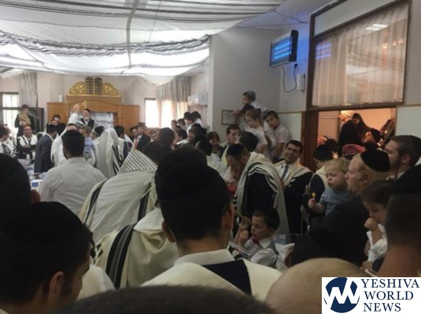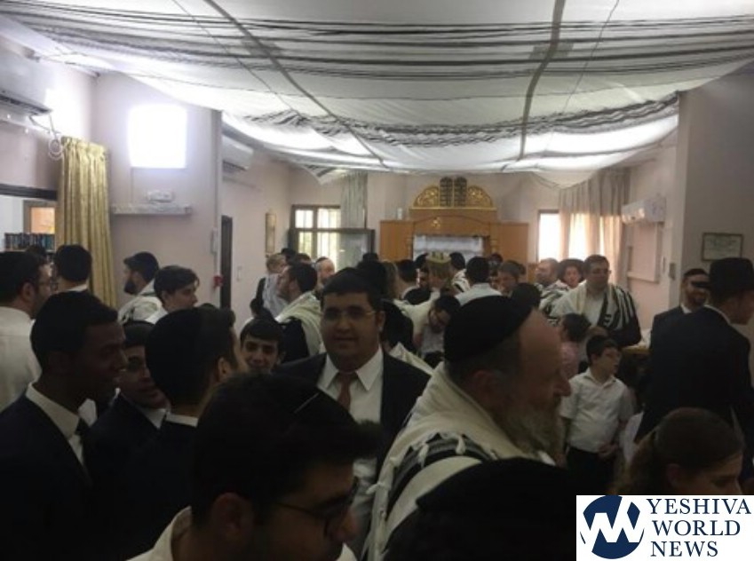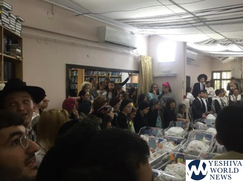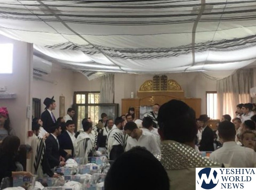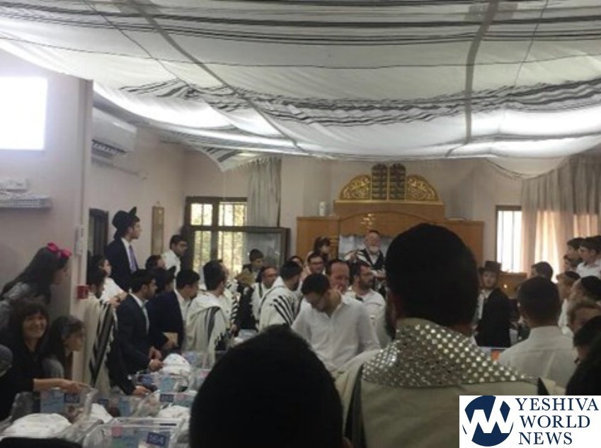 During the davening, all of the babies were taken from the nursery to the shul and they sang in their presence for a few minutes, leading to an emotional and uplifting event for all present. The singing and dancing were followed by the Kol HaNearim aliya.