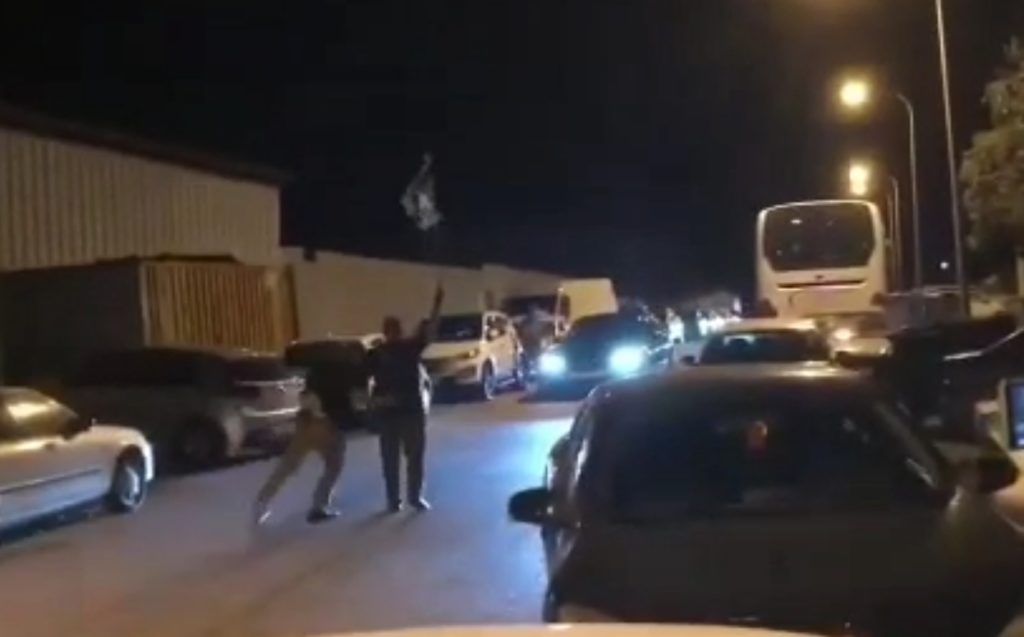 The suspect, a resident of Modi’in in his late 40s, suffered injuries after he ran into the street holding an Israeli flag and tackled to the ground by a security guard.