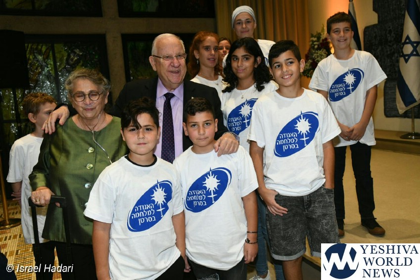 At the end of his remarks, the president said, “I want to give you strength, girls and boys, and to send from here my great and deep support for all those Israelis who are fighting cancer. We love you and give you strength and pray for you and hope that you will prevail and be able to continue your lives in joy and peace. Thank you to the people of the Israel Cancer Association. Let us all open our doors and our hearts.”