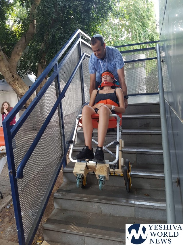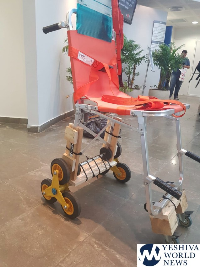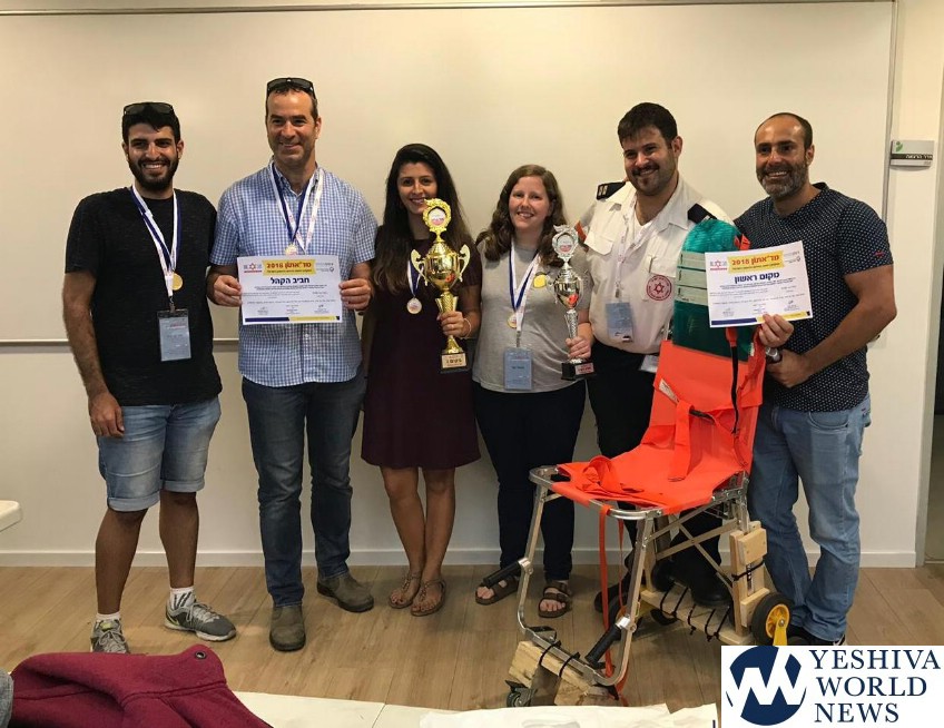 Among the projects that were presented, ‘Training wheels 8150′ took 1st place. Batel Segal, Or Ben Yair, Perach Abutbul, Oriel Valeniak, Gili Vinograd, Daniel Shilo and Itamar Rabinshteyn. They designed a modular system to be installed on existing ambulance chairs that will allow ambulance crews to safely lower a patient down a staircase using 1 EMT as opposed to a minimum of 2 currently.