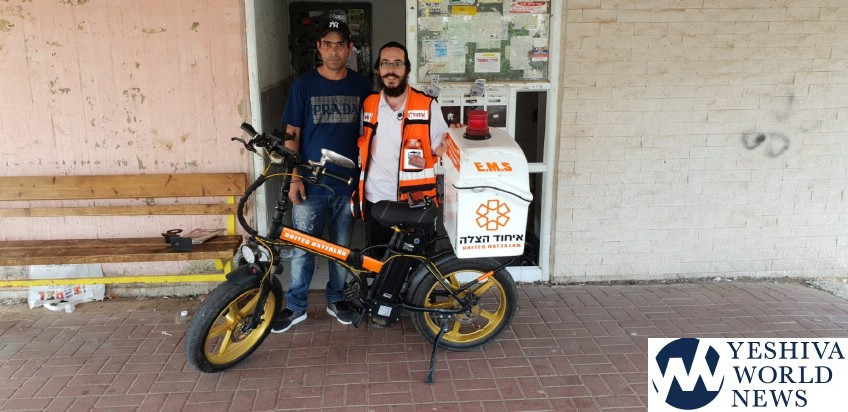 Kiryat Malachi resident and bicycle store owner Rafi Ovadia donated parts that were vandalized from a first response emergency electric bicycle that belonged to EMT Shmuel Galinsky. Galinsky’s electric bicycle, which he uses to respond to medical emergencies in his neighborhood, was vandalized over the weekend. Galinsky discovered the theft and vandalization of his bicycle when he received an emergency alert from United Hatzalah’s Dispatch and Command center on Shabbos afternoon.