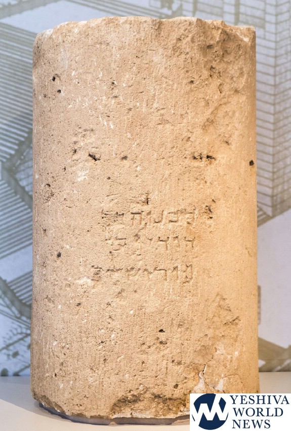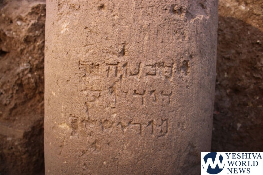 The inscription was found this last winter near the Jerusalem International Convention Center (Binyanei Ha’uma), during an excavation directed by the IAA’s Danit Levy, prior to the construction of a new road, undertaken and funded by Moriah – the Jerusalem Development Company and the Jerusalem Development Authority. During the excavations, the foundations of a Roman structure were exposed, which were supported by columns. The most important discovery was a stone column drum, reused in the Roman structure, upon which the Aramaic inscription appears, written in Hebrew letters typical of the Bayis Sheni Period, around the time of Herod the Great’s reign. The inscription reads: