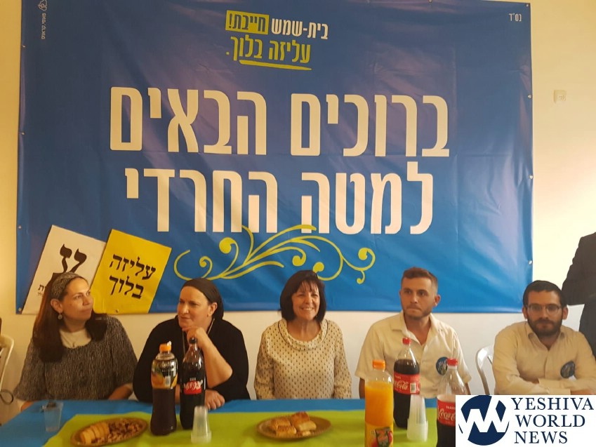 An election rally for chareidim supporting dati leumi candidate for mayor of Beit Shemesh, Dr. Aliza Bloch, was held on Tuesday night in Ramat Beit Shemesh Gimmel, a chareidi area. About fifty persons attend the event.