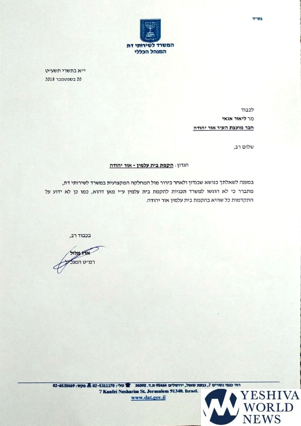 Some rabbonim are questioning if the new cemetery will impact the situation for kohanim on flights to and from Israel. A letter was sent to the Ministry of Religious Services to probe the matter. The response, which is attached, states the ministry is unaware of any new cemetery in the city and has not approved any plans for one.