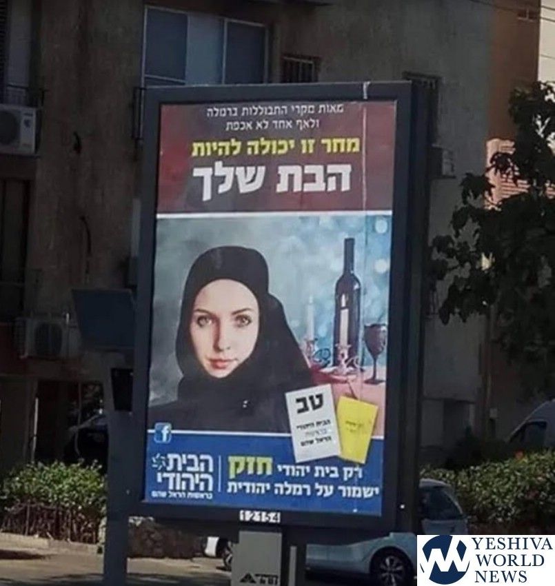 The Bayit Yehudi party is displaying posters showing a woman in Islamic garb, a hijab, under the banner, “tomorrow, this could be your daughter”, calling on voters to back the datil leumi party’s list in the Ramle elections. Municipal Election Day is on Tuesday, 21 Marcheshvan.