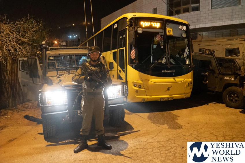 It was a difficult night for security forces who were protecting mispallalim visiting Kever Yosef in PA (Palestinian Authority) occupied Shechem on Wednesday morning, during the predawn hours of 29 Marcheshvan. The group of about 1000 came under attack with rocks and bottles.