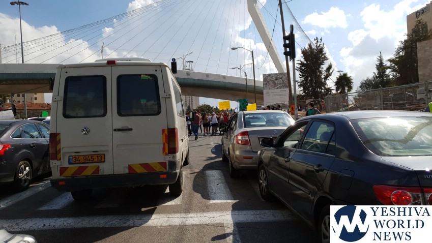 Striking public sector social workers on Monday, 4 Kislev, continued their strike actions which began on Sunday, their response to the increasing frequency of attacks against social workers around the country. On Monday afternoon, they blocked the road around the entrance to the capital in the area of the Chord’s Bridge as well as the roads near Kaplan Street and the Government Precinct.