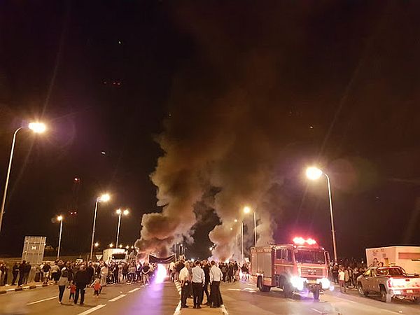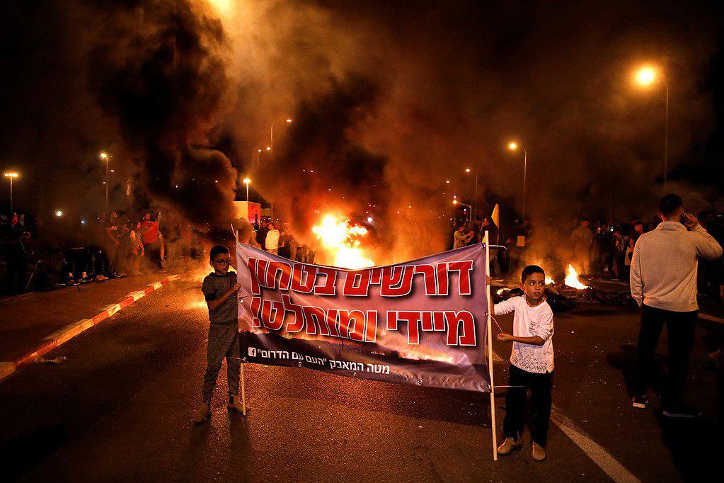 Protesters were blocking roads and burning tires, with some chanting, “Bibi go home,” using a nickname for Prime Minister Benjamin Netanyahu.