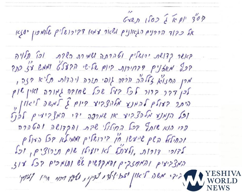 On Monday, HaRav Chaim Kanievsky wrote a letter to all voters encouraging them to vote leon:
