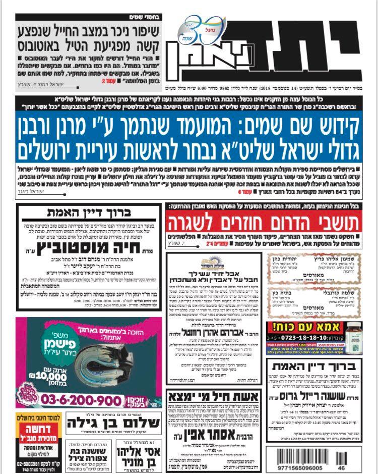 DEGEL BROKE RANK WITH AGUDAH IN THE FIRST ROUND BY REFUSING TO VOTE FOR YOSSI DEUTCH – A CHAREIDI SLONIMER CHOSSID (HASHEM YISHMOR! A CHOSSID SHOULD WIN!) . IN TSEFAS, DEGEL IS SUPPORTING THE IRRELIGIOUS CANDIDATE SO CHOLILAH THE CHOSSID SHOULDN’T WIN THE RUNOFF ELECTION. WHERE ARE THE LETTERS ABOUT THE CHILLUL HASHEM IN TZEFAS??? I DIDN’T KNOW THAT YOU HAVE A HETER FOR LOSHON HORA BY MENTIONING A YID BY NAME. I TOO CAN TELL YOU WHO IS RESPONSIBLE FOR THE FIASCO AND WHO IS RESPONSIBLE FOR GETTING RAV CHAIM SHLIT”A TO HEAR ONE SIDE. BUT I DON’T KNOW THE HETER.