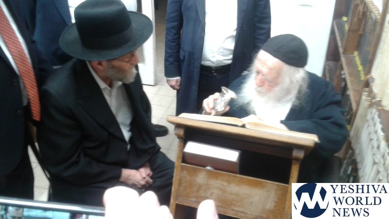 At around 1:15AM IL, MK Moshe Gafne visited Rav Chaim Kanievsky, who was where he always is, at his Gemara learning. Upon hearing the news, Rav Chaim asked for some wine, and made “Lechayim”. The attached photos were taken at this event.