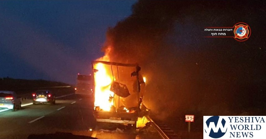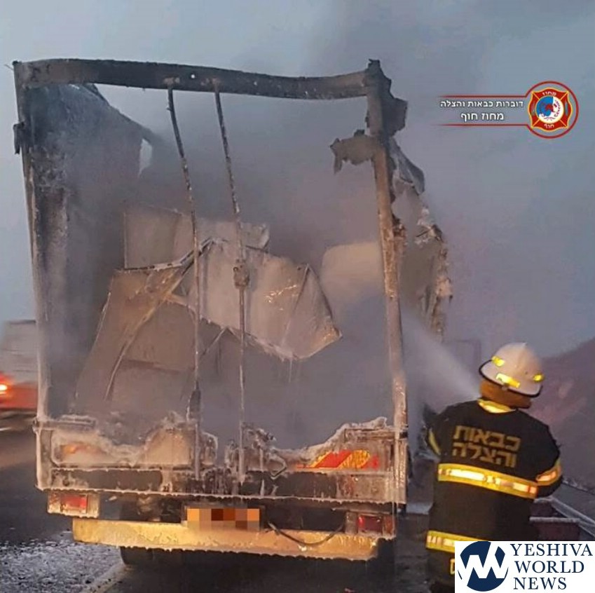 The vehicle and its cargo were destroyed in the fire. B’chasdei Hashem, there was no loss of life or injuries.