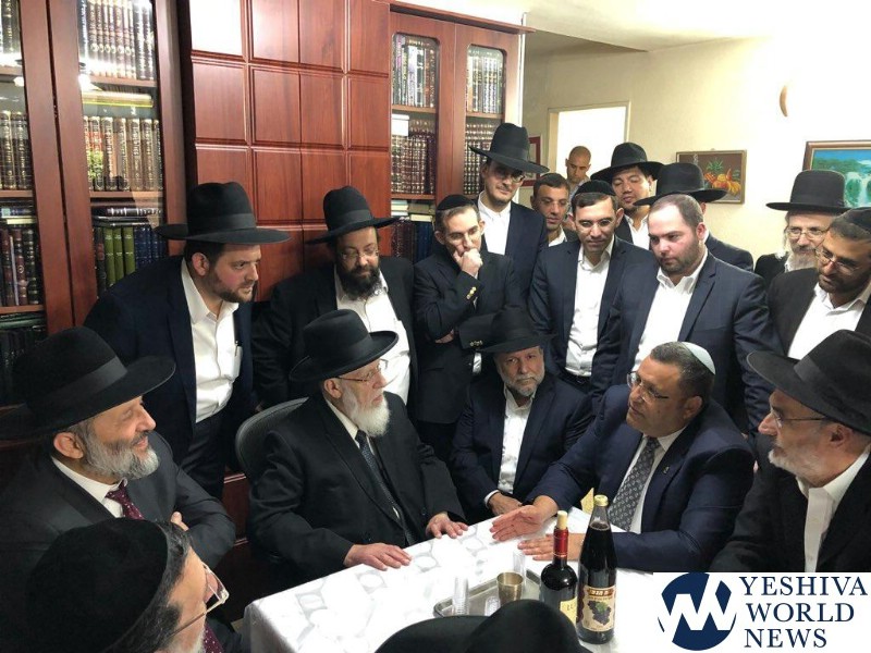 Leon then visited the home of the Nasi of Shas, the head of the Moeztes Chachmei Hatorah, Hagaon HaRav Sholom Cohen. Rav Cohen made a massive Yom Tefilla the night before the election together with Hagon HaRav Chaim Kanievsky, who travelled from Bnei Brak from the event. More than ten thousand people packed the Kosel Plaza.