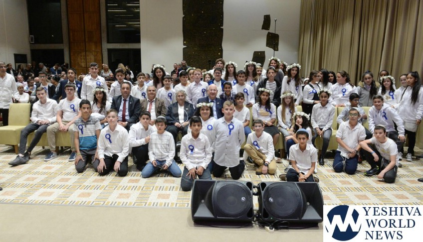 In line with the annual custom, President Reuven Rivlin and First Lady Nechama Rivlin on Monday evening hosted a bar- and bas mitzvah event at the President’s Residence for around 60 children of families affected by terrorist attacks. During the event Nehorai Zarka ben Sa’adon, the son of Michael ben Sa’adon HY”D, who was killed in a terrorist attack in Eilat in 2007, spoke on behalf of the children.