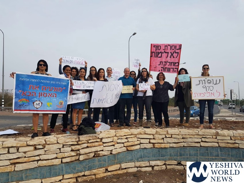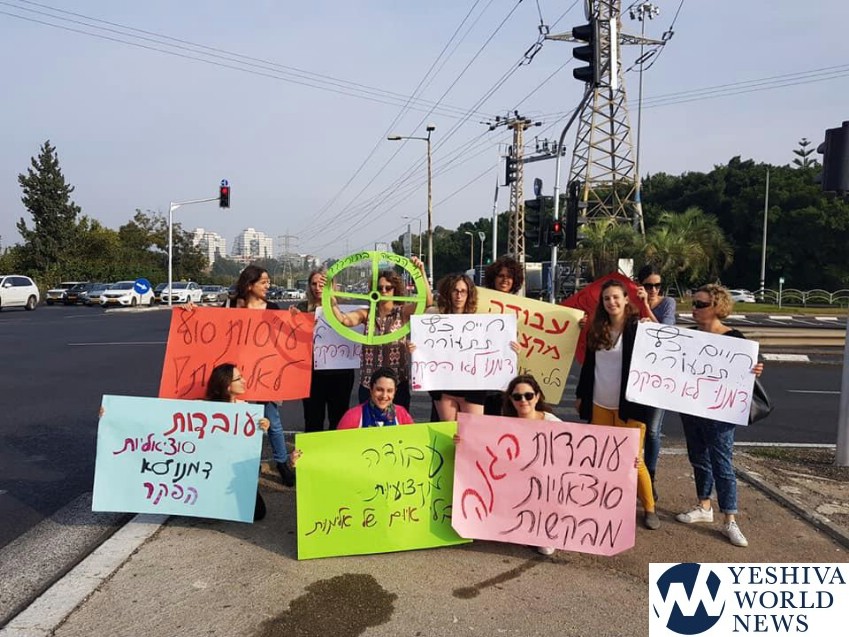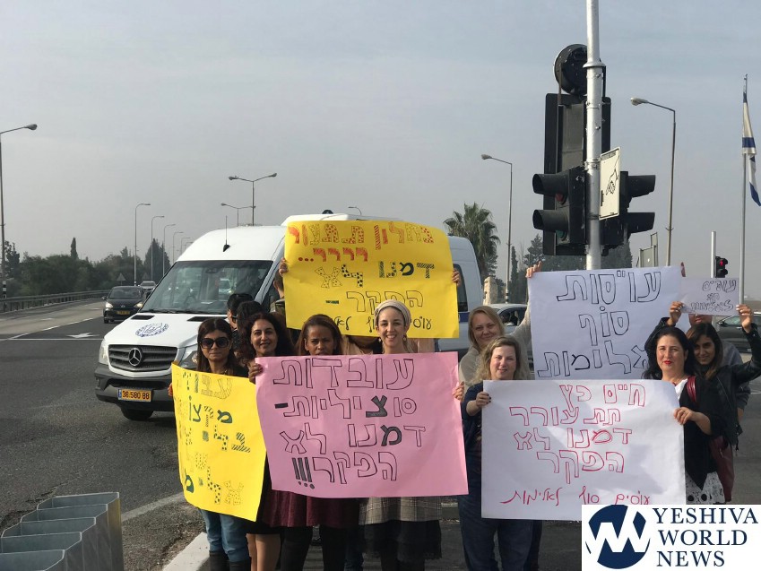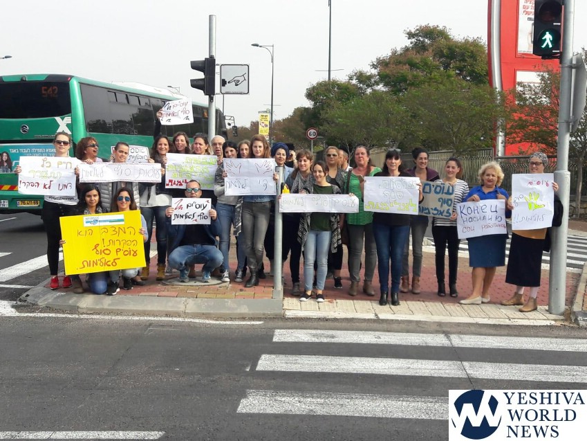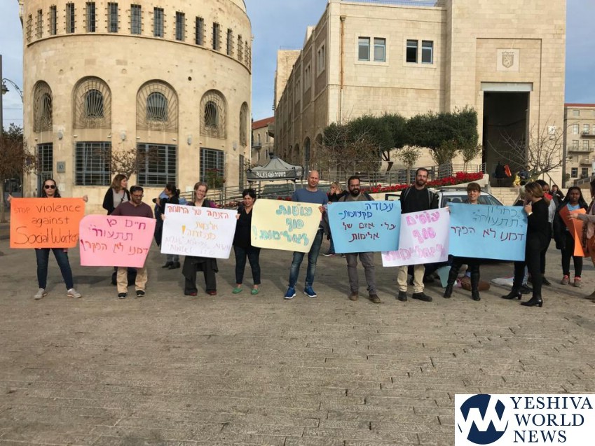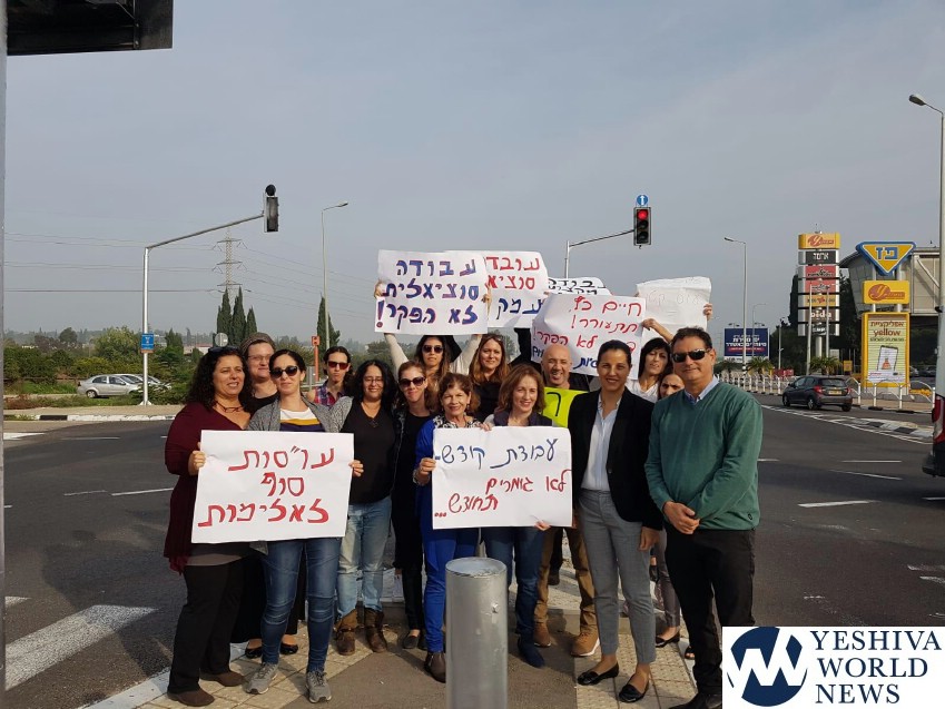 Israel’s social workers took to the streets about fifty intersections around the country on Wednesday morning, protesting attacks directed at them. The protests were held between 8:00AM-10:00AM.
