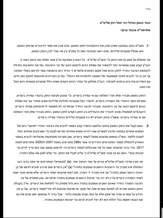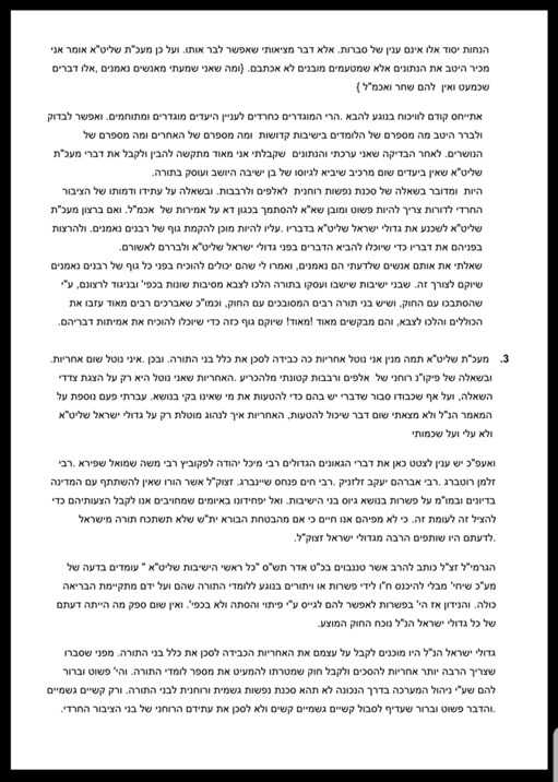 Since these letters were leaked, appearing in BeChadrei, Slonim has announced it will not continue this form of communications, exchanging letters, for it is clear there are some who are willing to risk the bnei Torah’s future for the media hype.