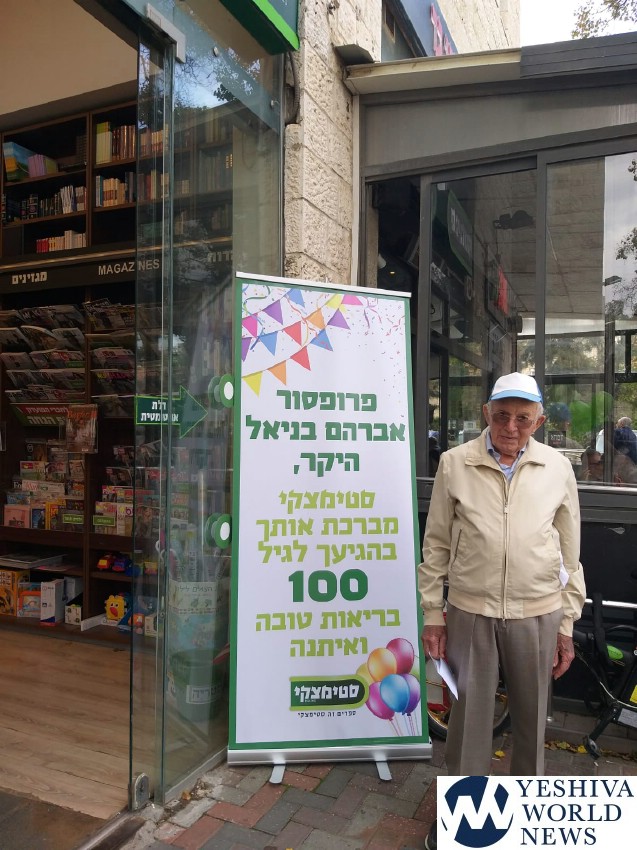 The employees of the Steimatzky store in Jerusalem surprised Professor Avraham Benial, who celebrated his 100th birthday this week!