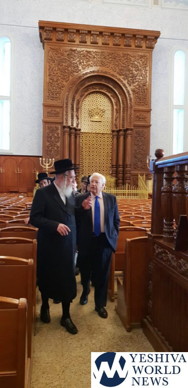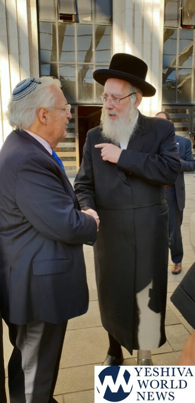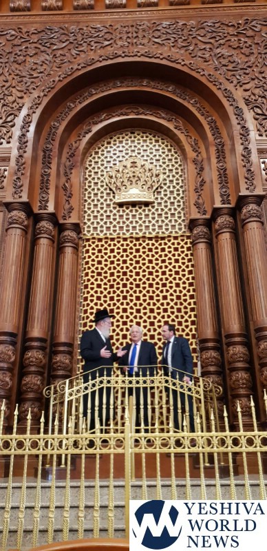 The Ambassador was given a tour of the building by MK Rabbi Yisroel Eichler, who introduced him to the Rebbe.