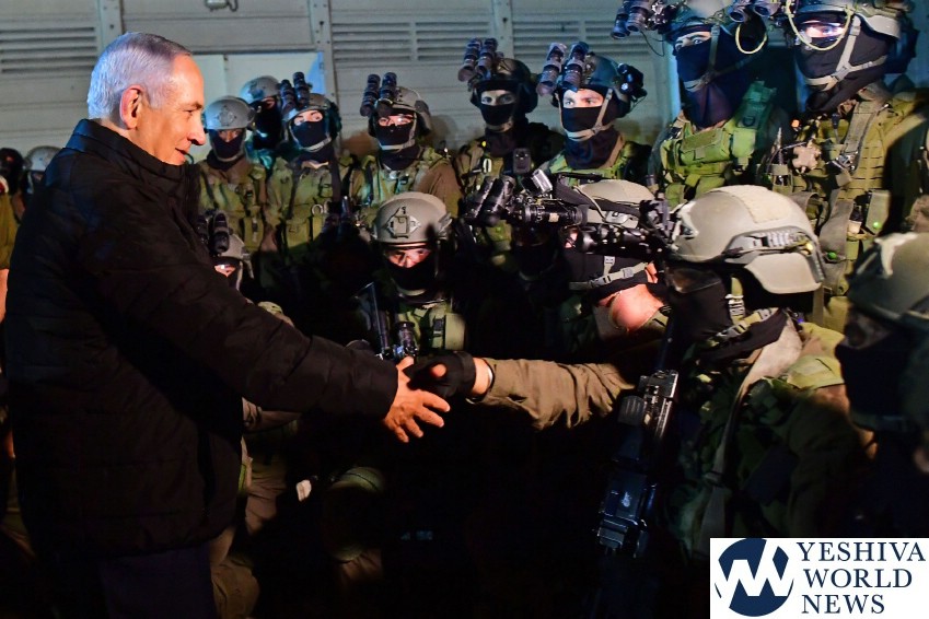 Prime Minister/Defense Minister Binyamin Netanyahu on Tuesday visited a elite commando unit during a training operation accompanied by outgoing IDF Chief of Staff Lt.-General Gadi Eizenkott and other senior officers.