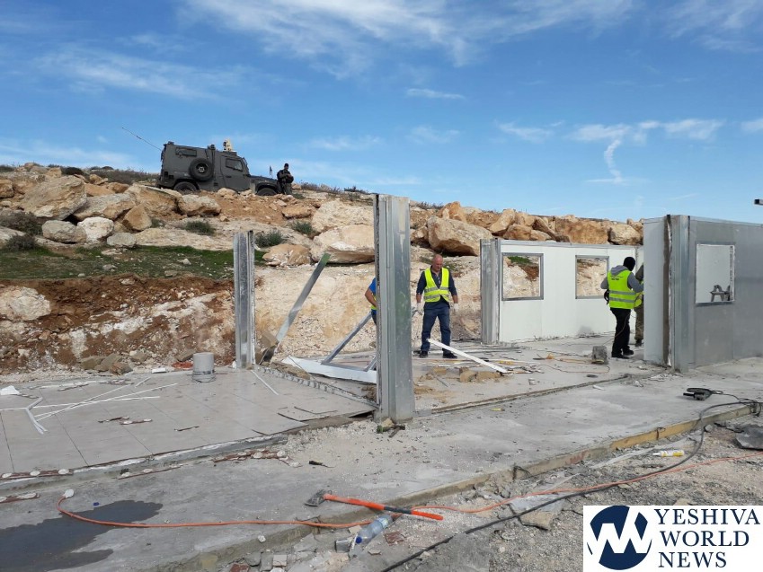 The illegal structure, which represents another PA and EU effort to create facts on the ground, was discovered by area officials on motzei Shabbos, and a report was filed immediately with the Civil Administration and agents arrived on Wednesday to dismantle it.