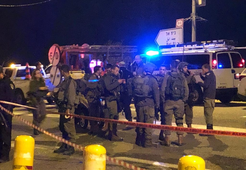 According to video footage from the scene, it appears the shots were fired from a passing vehicle at the Ofra Junction, striking the civilians waiting at a bus stop.