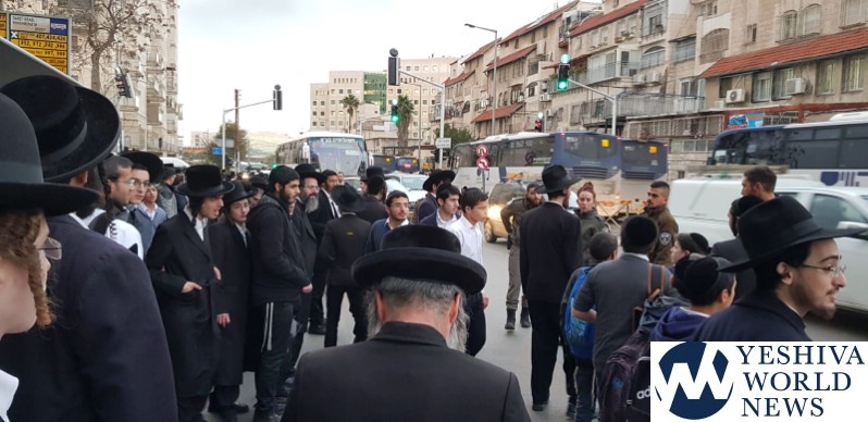 That protest was for a bochur who remains imprisoned for failing to report to draft authorities, Yitzchak Aryeh, whose detention was extended once again this week in a military court.