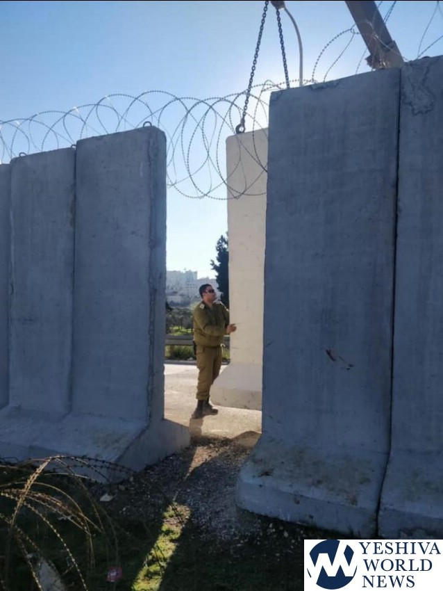The accompanying photo and video show the court-ordered gap in the security wall that permitted the terrorist to enter the army position near Beit El on erev Shabbos and carry out the attack that left an IDF soldier in critical condition. The terrorist entered via the opening and when confronted by the soldier, Naveh Rotem, and then injured him with a knife and struck him in his head with a stone and then fled the scene.