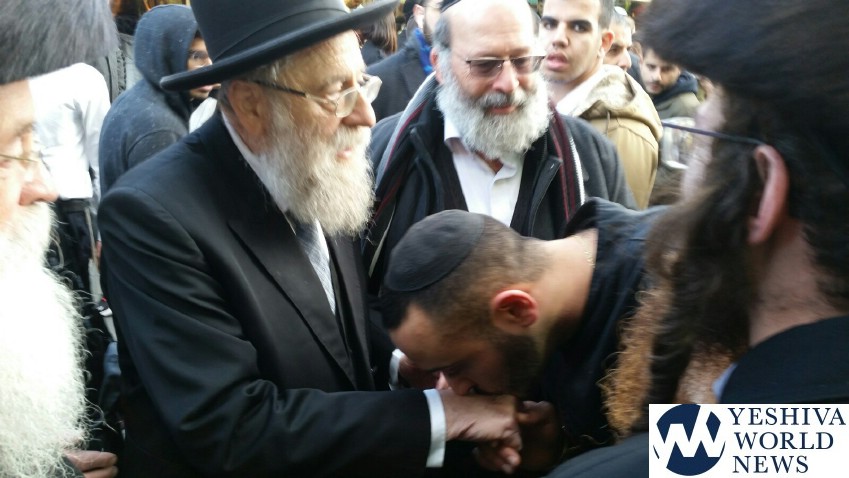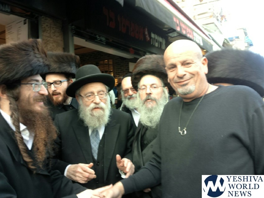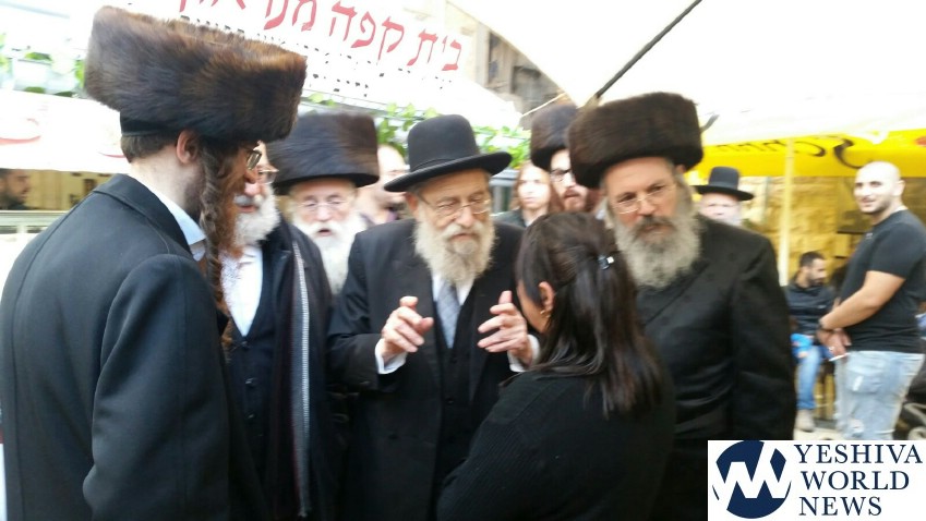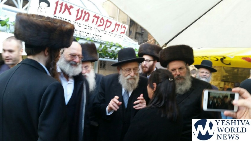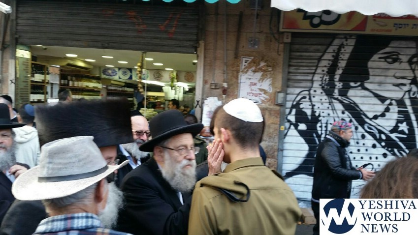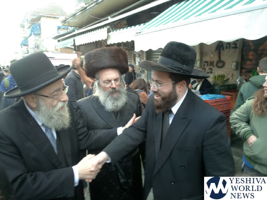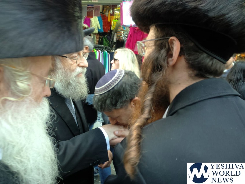 Members of the so-called ‘Mazhirei Shabbos’ ( “מזהירי השבת”) accompanied the rav, first and foremost Rav Avraham Cohen Arazi, who each week arrives at the shuk and works to have the merchants close in time towards safeguarding Kedushas Shabbos. Accompanying the rav were the Jerusalem Rabbinate’s mifakeach, the person in charge of the shuk, Rav Yigal Shabtai, as well as Jerusalem Councilman Rav Yochanan Weitzman. It did not take too long for many area residents to make their way over to receive a bracha from Rav Stern before Shabbos.