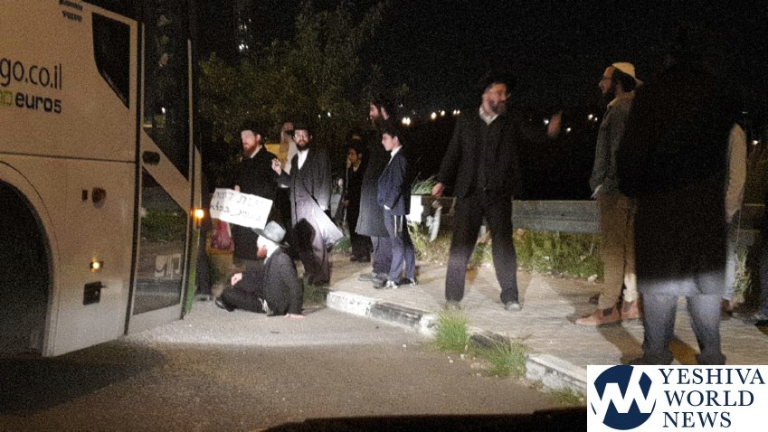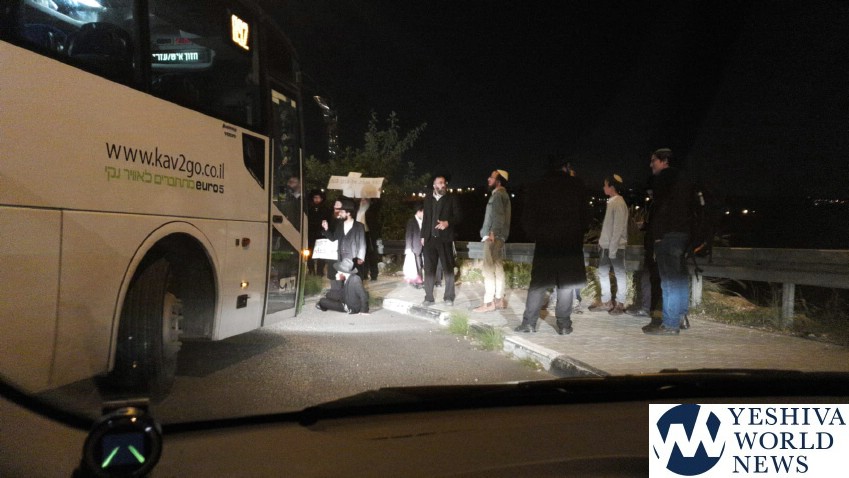There were also protests at Kikar Shabbos and Yechezkel Street where several dozen protesters closed the intersection for a brief period. Another protest was reported near the entrance to Modi’in Illit, where an ambulance on an emergency call was delayed due to protesters blocking the road. There were confrontations at the entrance to Modi’in Illit between the protesters and others, who were angered at the closure of the entrance and exit to the city after Shabbos.