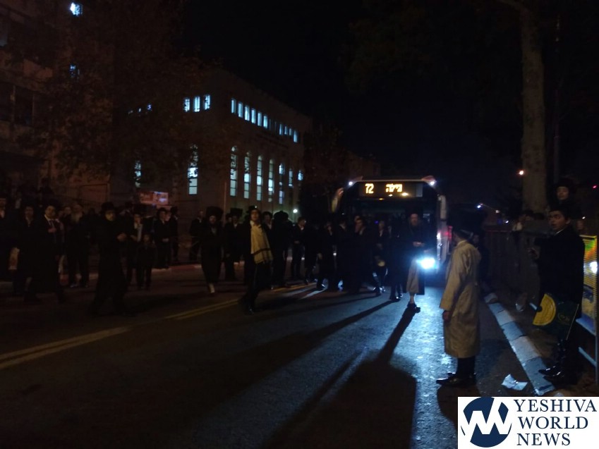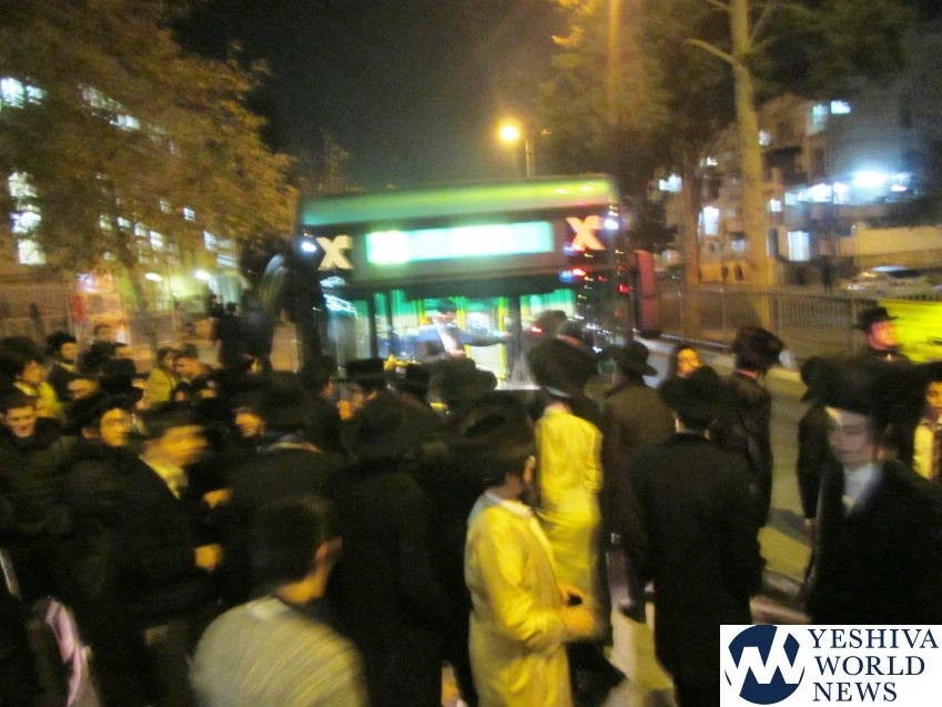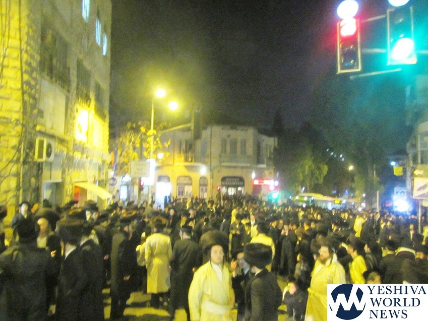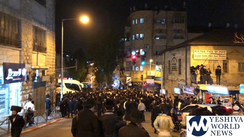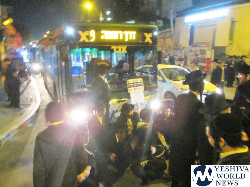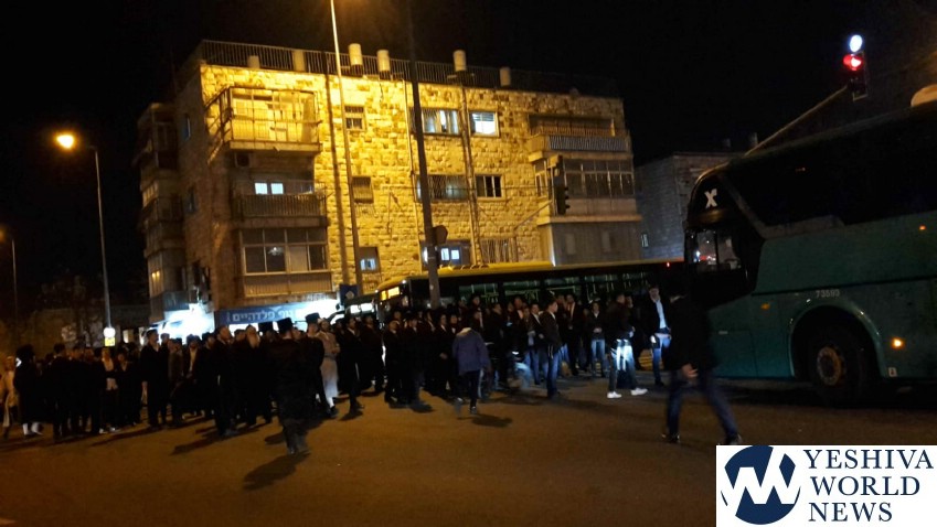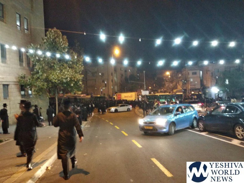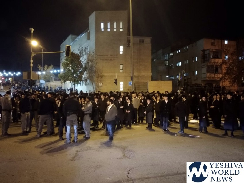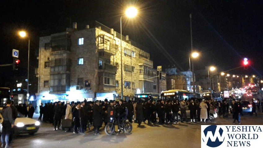 Members and supporters of Peleg Yerushalmi on Motzei Shabbos held protests at a number of venues, including at Shmuel HaNavi/Bar Ilan Street in Yerushalayim, causing a major traffic jam in that area. Police report arresting two participants for disorderly conduct at that protest.