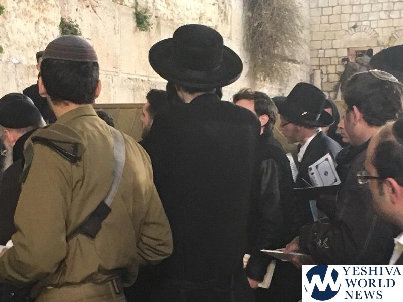 An atzeres tefilla was held at the Kosel on Sunday night on behalf of seriously wounded soldier Netanel Felber, who sustained gunshot wounds to his head during the shooting attack at Givat Assaf. On Sunday, officials at Hadassah Ein Kerem Hospital reported the soldier remains in serious/unstable condition in an intensive care unit, breathing on his own, but still in life-threatening condition.