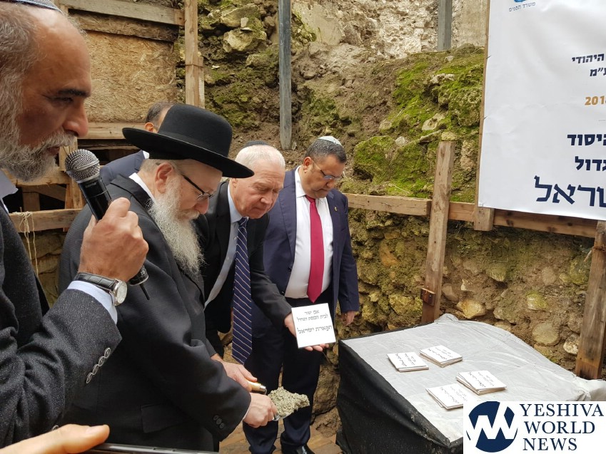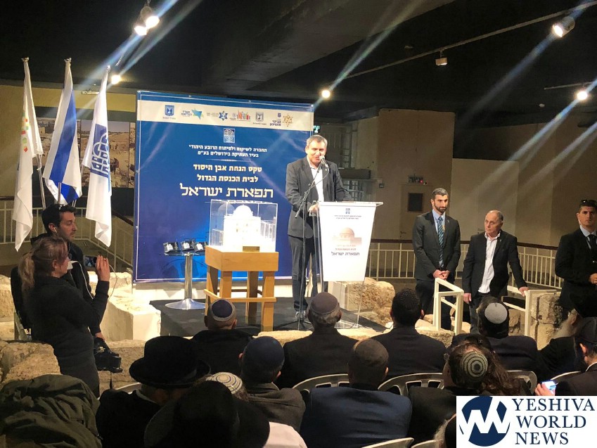 The cornerstone laying ceremony for Beit Knesset Tiferet Yisrael in the Old City of Jerusalem took place on Monday in the presence many officials, including Housing Minister Yoav Galant, Minister of Jerusalem Affairs Ze’ev Elkin, Deputy Health Minister Yaakov Litzman, and Jerusalem Mayor Moshe Leon.